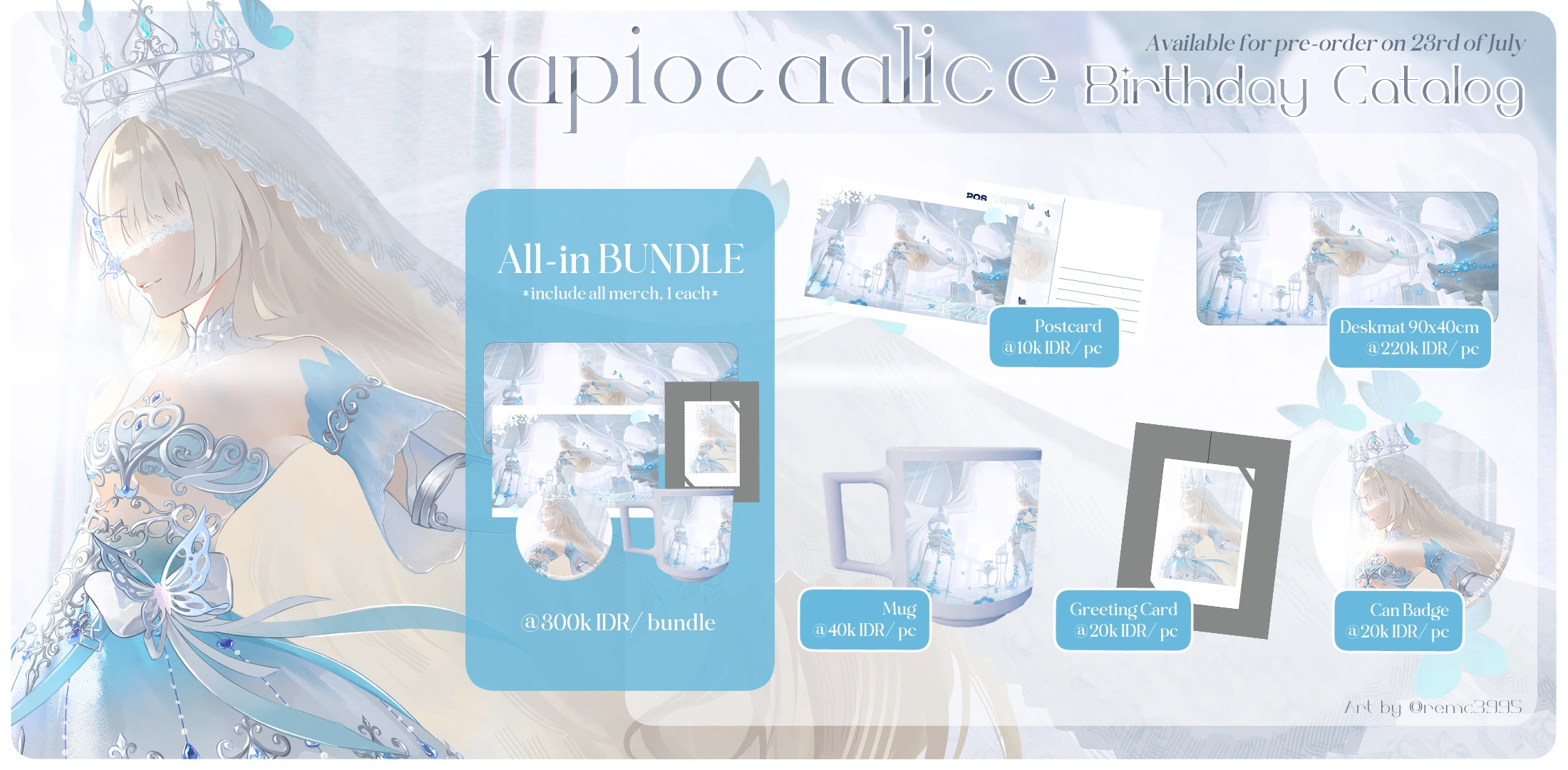 Kabar gembira untuk para penggemar tapiocaalice! Merchandise resmi untuk perayaan ulang tahun Alice tahun 2025 kini sudah tersedia untuk pre-order. Mari rayakan #DearAlice2025 bersama-sama dengan koleksi merchandise eksklusif yang spesial!